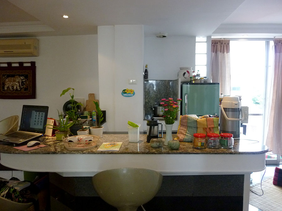 Many expats compare the overrepresented Thai-style studios to hotel rooms, but I think dormitories are a better description. Here’s a quick rundown: studios are common, one bedrooms are not. Kitchens are very rare, like a good steak. Most folks create a kitchen space with a counter top range and a hot water pot. Many cook outside on their tiny balconies.