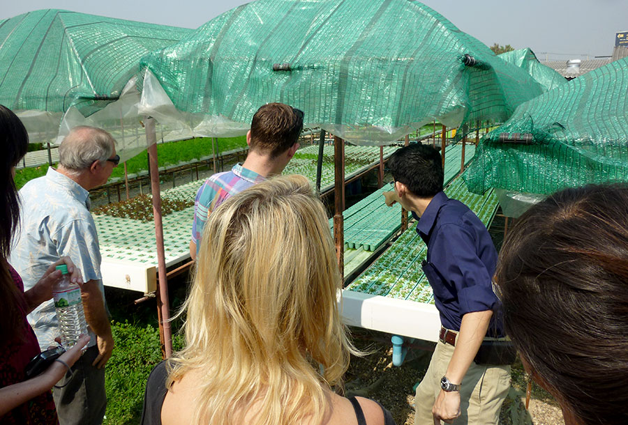I have my friend JP to thank for organizing both events (farm & fork) because I don’t think there are many folks who have had the opportunity to see where a restaurant’s food originates from. (Except maybe the people at the Food Network) Admittedly, I don’t know much about hydroponic farming, but I knew Salad Terrace‘s owner Khun Lek was going to give us a little tour of his farm. I was looking forward to it as I like “behind the scenes” stuff/books/stories.