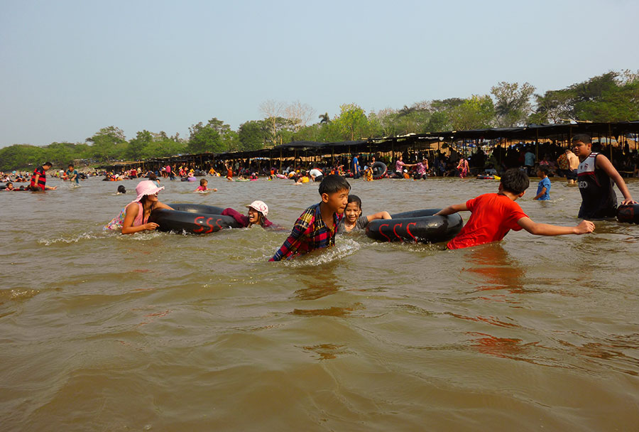 Even though I used to live near Huey Tung Tao in Chiang Mai and regularly walked near the reservoir, I like CR Beach better. (Let the comparisons begin!) For me, it’s the trees. The trees are so tall here. Oh, and the limestone mountain. Oh! And the surroundings! CR Beach is also only 4km from town. It’s more accessible and if you wanted to you could swim across the river and check out the Buddha caves.