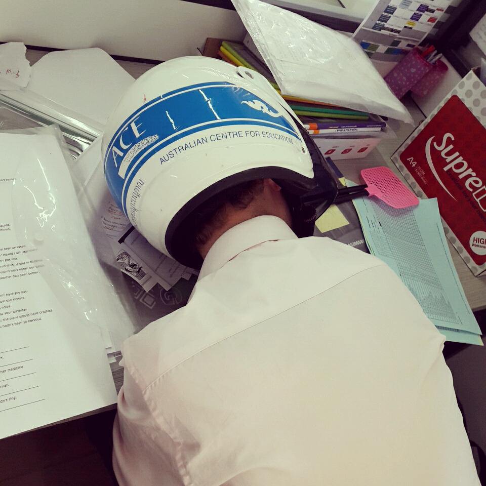 This weekend during a break between classes, my colleagues and I looked at one another with bloodshot eyes. We teach six hours on Saturday and Sunday so by the time Sunday afternoon rolls around, we’re pretty exhausted. We confessed that sometimes we fall asleep by 8.30. My BF likes to talk about that time when he came home from school, face-planted into his bed, and passed out with his teacher clothes and shoes still on.