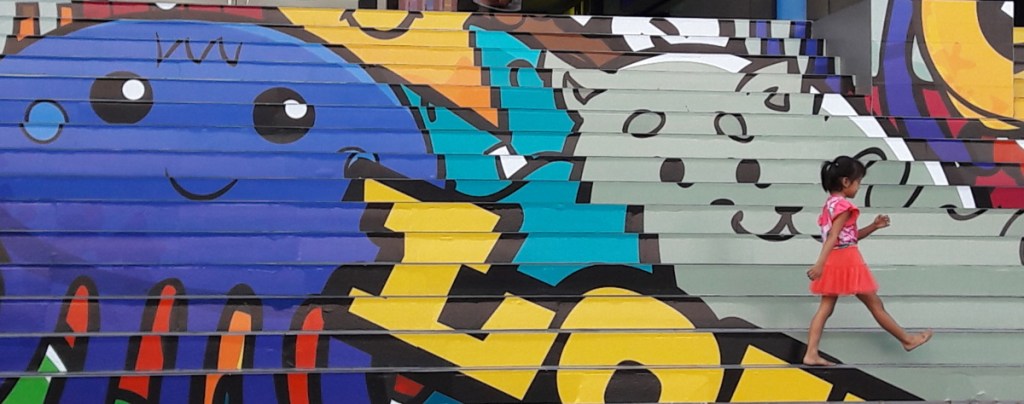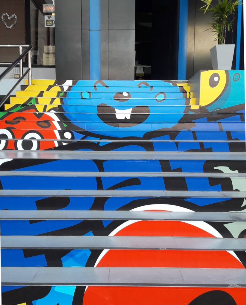 This month I didn’t go anywhere exciting or different, but interestingly, I noticed recently that the stairs near work got a makeover. Isn’t that funny how we walk by the same places, and then, wait, what is that?